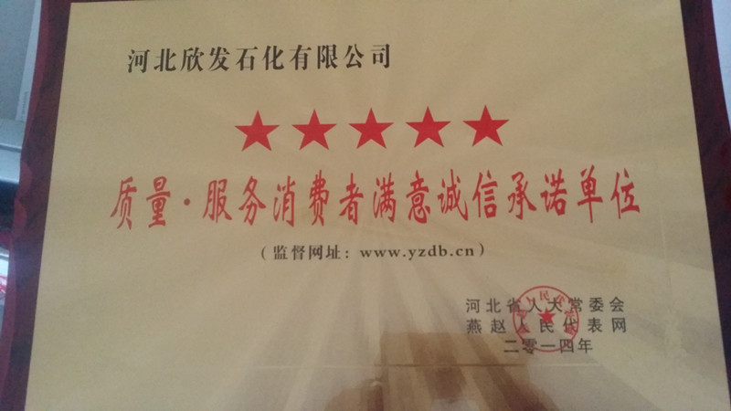 欣发石化获“质量服务消费者满意诚信承诺单位”荣誉称号